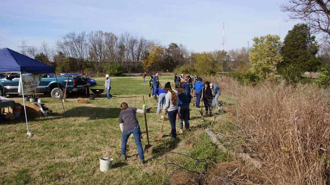 The Rotary Club of Murfreesboro along with the Tennessee Environmental Council and MTSU students planted several trees along the south bank of Lytle Creek, on South Church Street, next door to Jennings & Ayers Funeral home.